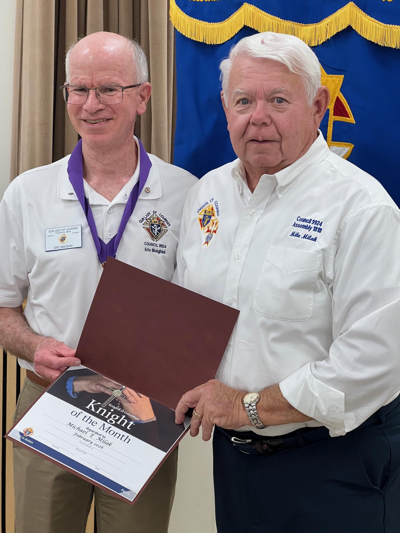 Mike Milak Presented with the February 2026 Knight of the Month Award