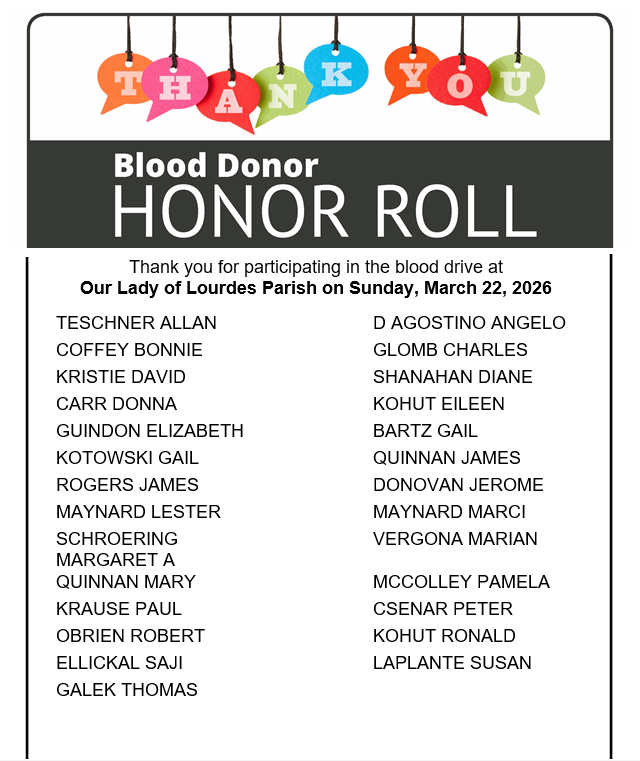 Following is the Honor Roll listing all those who participated in the March 22, 2026 drive. Many thanks to all the donors: